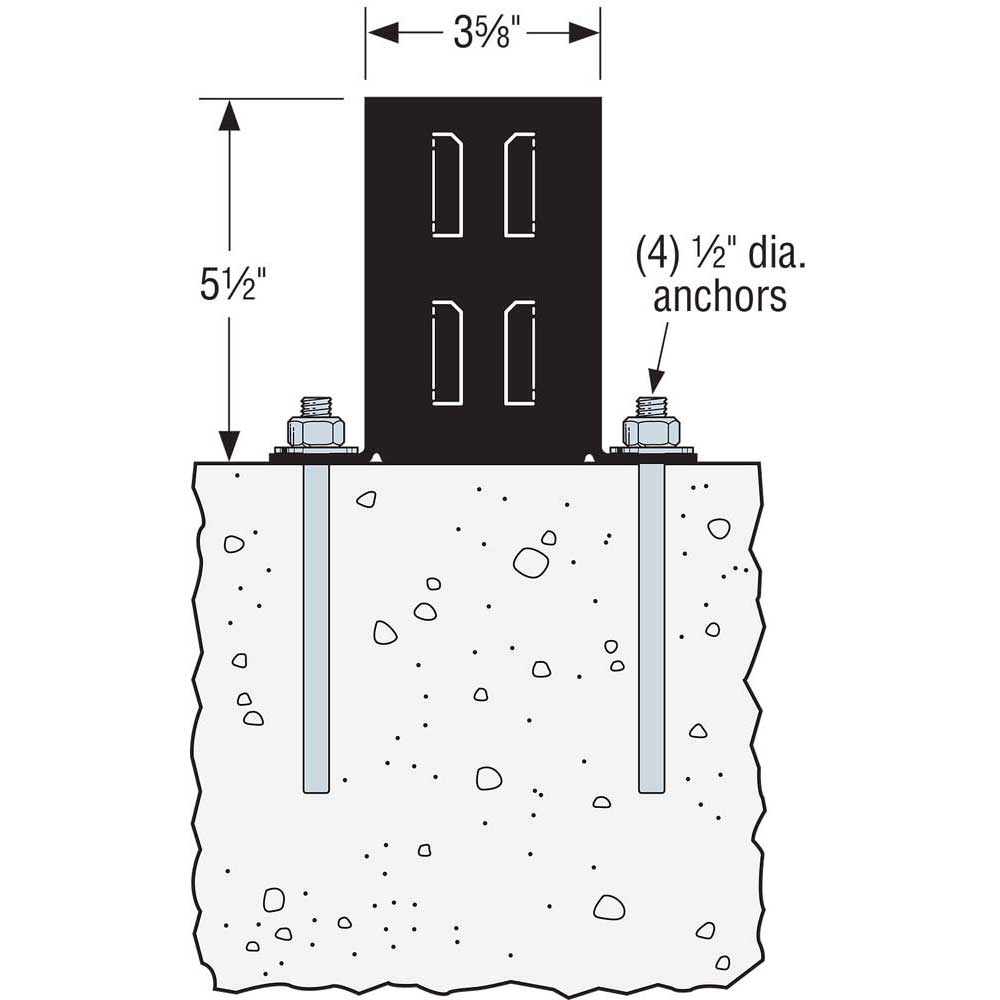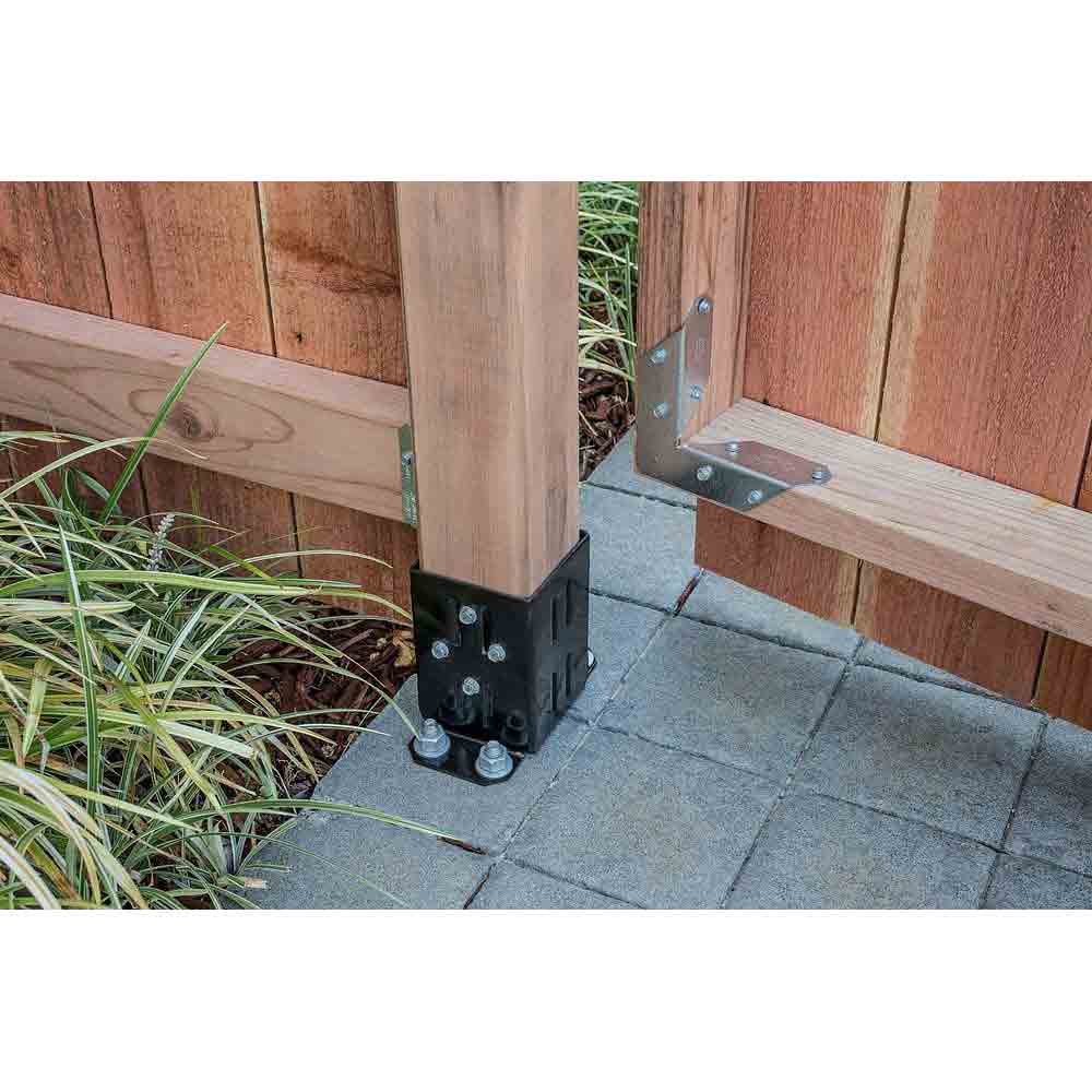 - Retrofit design allows for fast installation of 4×4 wood posts on existing concrete surfaces.