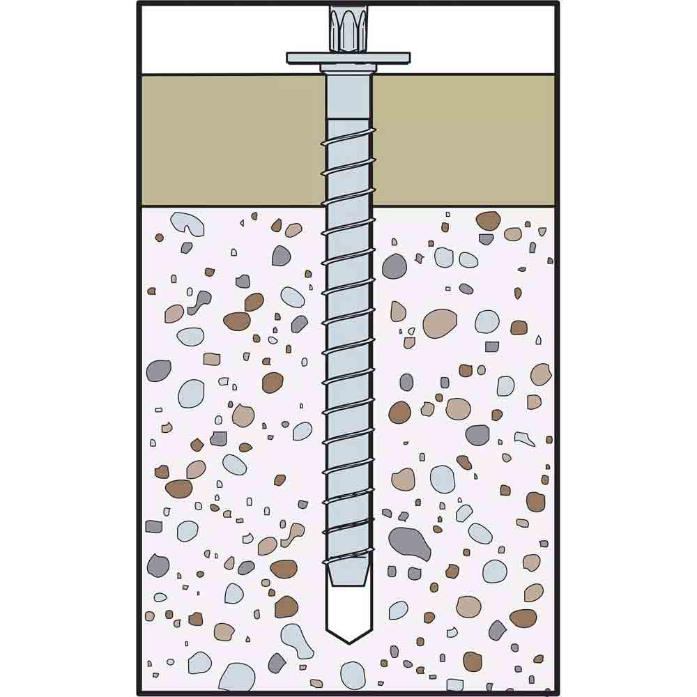- Washer head allows screw anchor applications incompatible with a hex head