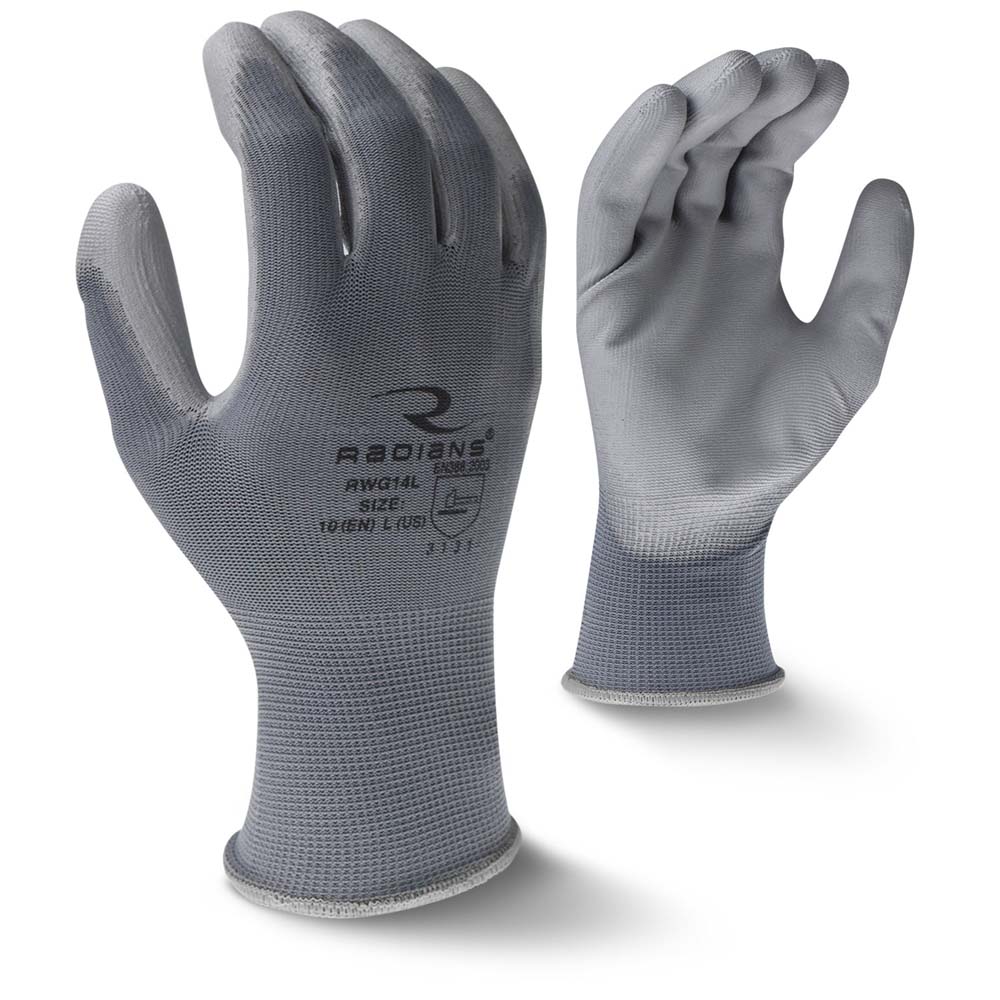 The Radians RWG14 is a lightweight PU palm coated glove with a 13 gauge gray polyester shell. The elastic cuff provides a comfortable, slip-on fit while the PU palm coating provides excellent protection in wet or dry applications, reducing hand fatigue.