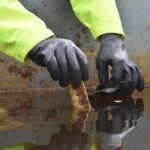 - 13 gauge high gray nylon shell with a black sandy foam latex coating