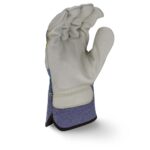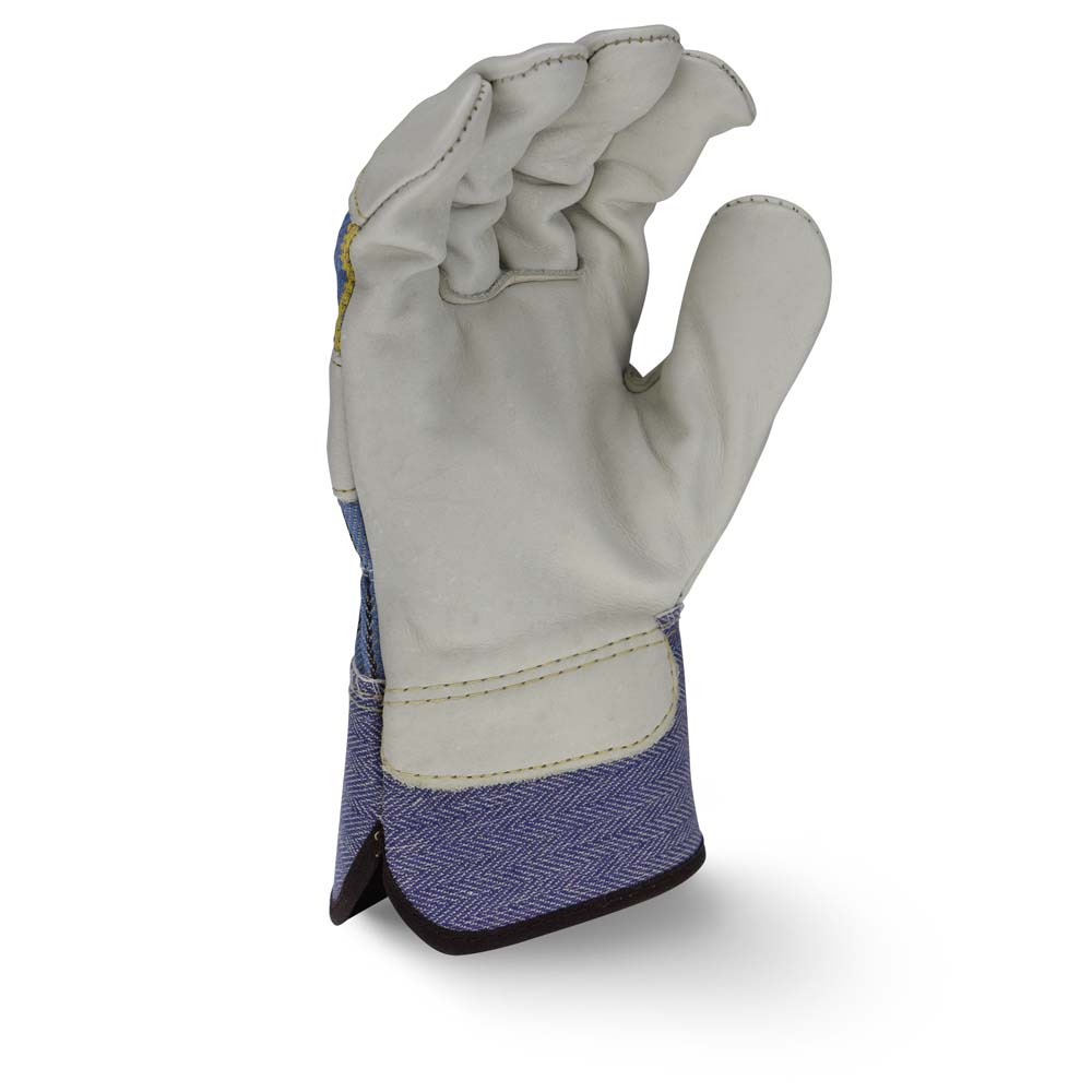 The Radians RWG3210 leather palm glove is a great leather option, offering a regular grain cowhide leather palm, gunn cut with a wing thumb, leather knuckle strap, and a rubberized safety cuff.