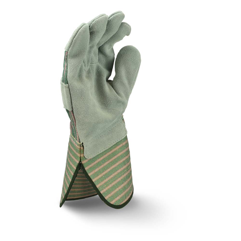 The Radians RWG3300G leather palm glove is a great leather option, offering a shoulder gray split cowhide leather palm, gunn cut with a wing thumb, leather knuckle strap, and a gauntlet cuff.