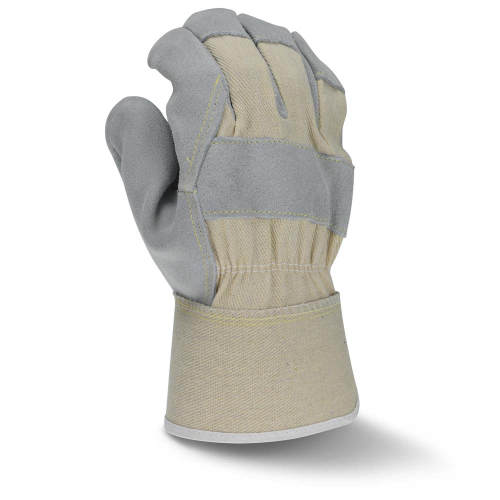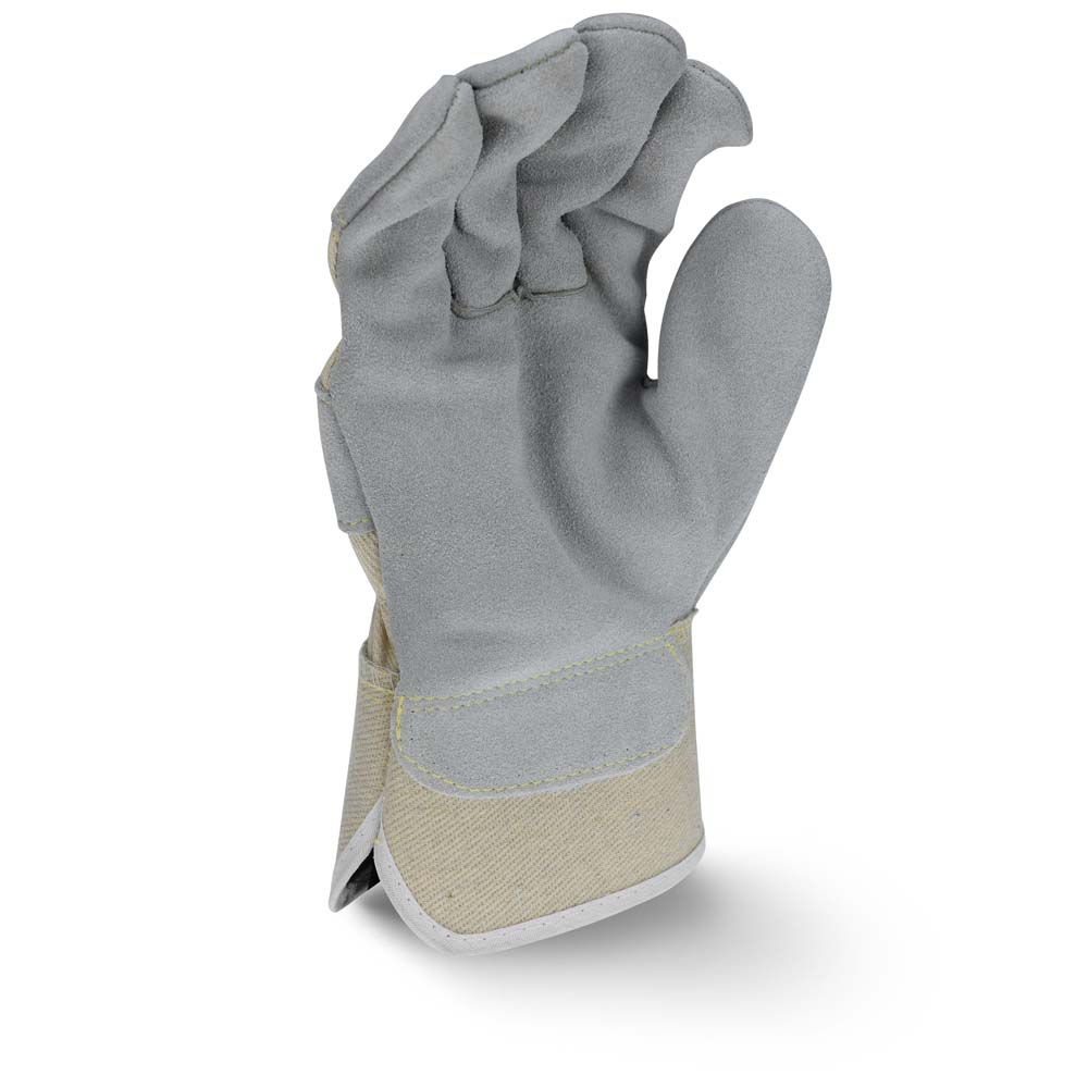 The Radians RWG3400W leather palm glove is a great leather option, offering a side split gray cowhide leather palm, gunn cut with a wing thumb, canvas back, aramid thread leather knuckle strap, and a rubberized safety cuff.
