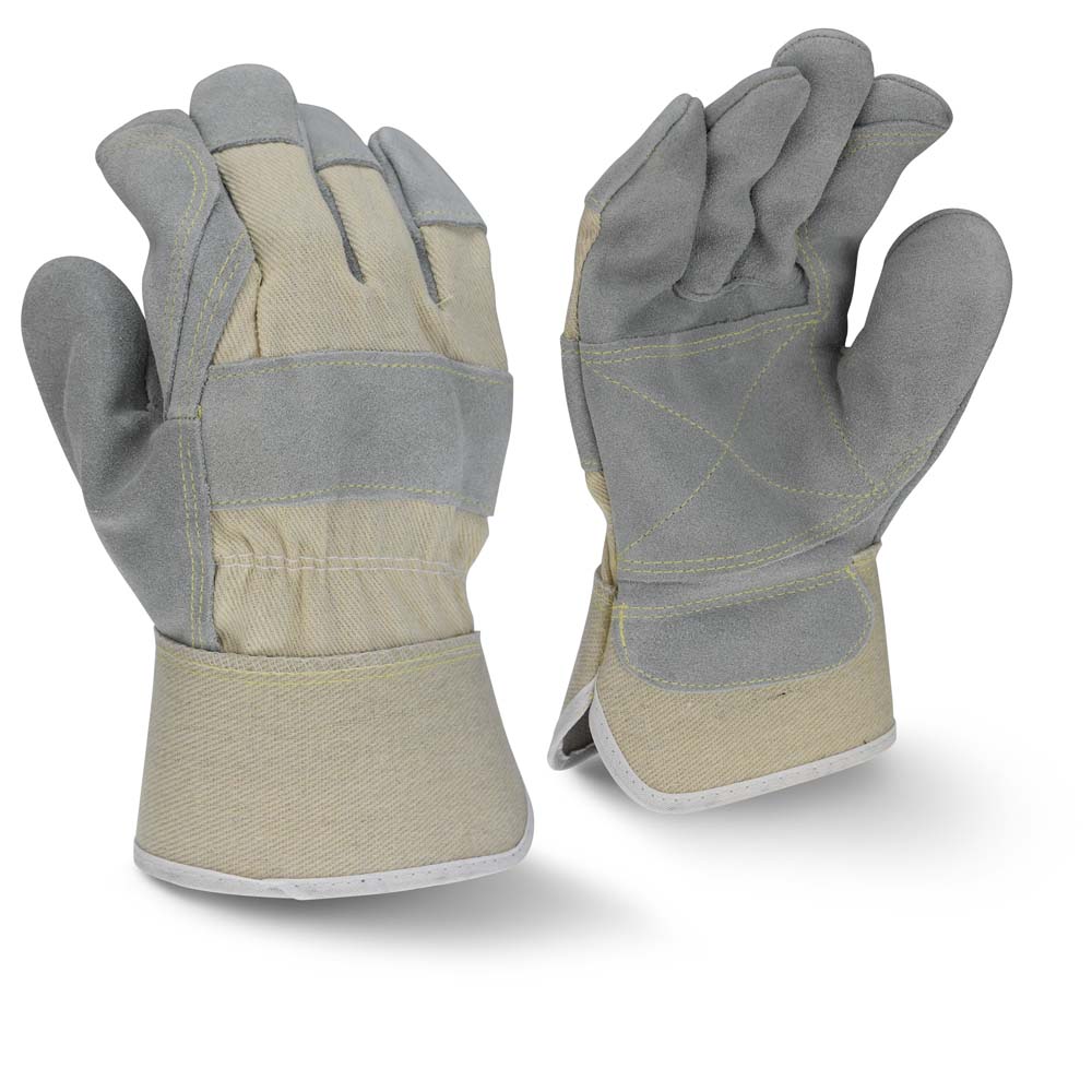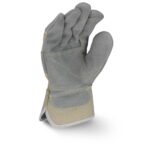 The Radians RWG3400W leather palm glove is a great leather option, offering a side split gray cowhide double leather palm, gunn cut with a wing thumb, canvas back, aramid thread leather knuckle strap, and a rubberized safety cuff.