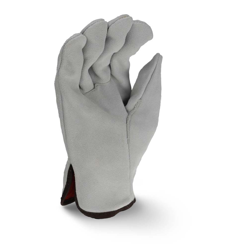 The Radians RWG4025 leather driver is a great standard leather glove option, offering an standard split cowhide leather, straight thumb, shirred wrist, red fleece lining, and a cloth hem.