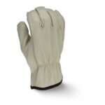 The Radians RWG4220 leather driver is a great economy leather glove option, offering a standard grain cowhide leather, keystone thumb, shirred wrist, and a cloth hem for comfort.