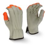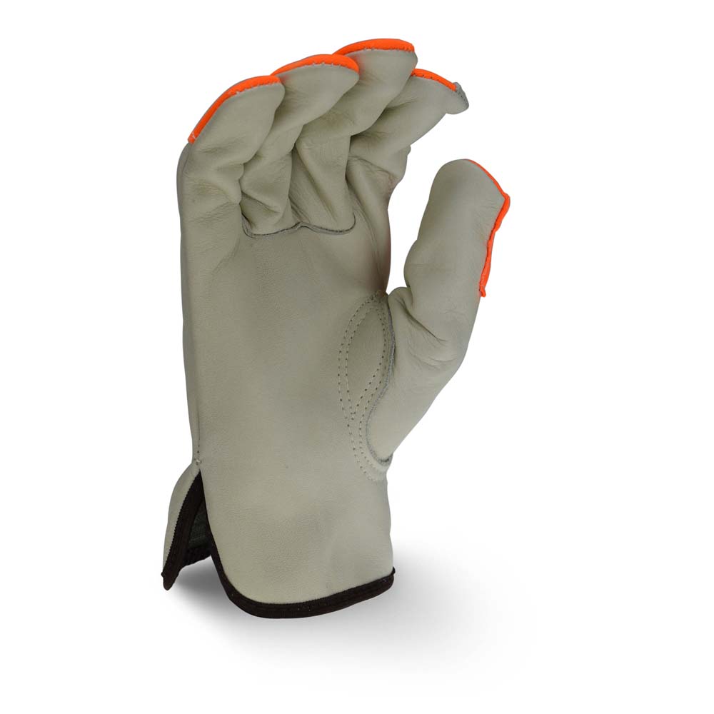 The Radians RWG4220H hi-vis leather driver is a great economy leather glove option, offering a standard grain cowhide leather, hi-vis fingers, keystone thumb, shirred wrist, and a cloth hem for comfort.