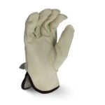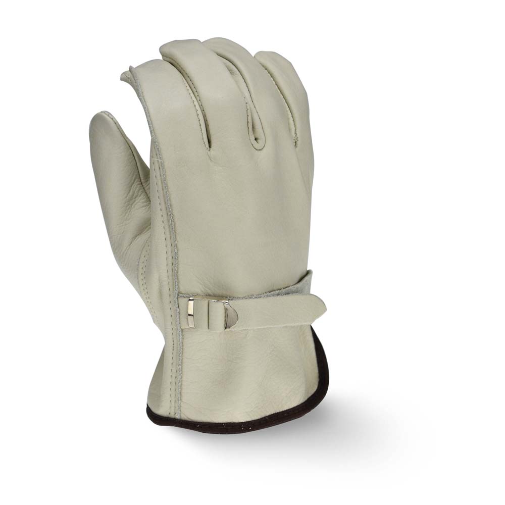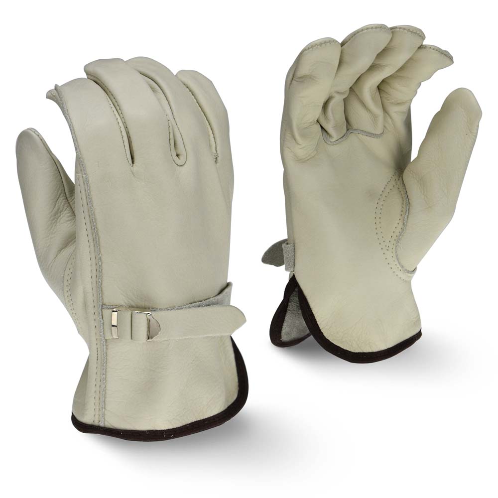 The Radians RWG4221 leather driver is a great economy leather glove option, offering a standard grain cowhide leather, keystone thumb, pull strap, shirred wrist, and a cloth hem for comfort.