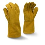 The Radians RWG5310 leather welding glove offers a select split brown cowhide leather construction, full sock lining with foam, wing thumb, reinforced palm, and 14″ fully welted seams with aramid stitching.