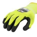 The RWG558, part of the Axis Series by Radians, is engineered for exceptional hand protection in demanding environments. With an ANSI Cut Level A8 rating and an EN388 TDM-100 cut rating of F, this glove is built to withstand high-risk tasks while ensuring safety and durability. Its 13-gauge high-visibility green HPPE outer shell, reinforced with fiberglass and stainless steel, offers superior resistance to abrasions and cuts, making it ideal for heavy-duty applications. The black polyurethane palm coating enhances gripping power, delivering reliable performance in both wet and dry conditions. Designed with a seamless cuff, the RWG558 provides a secure and comfortable fit, reducing hand fatigue during extended use. Tested to EN388 standards, it demonstrates excellent resistance to abrasion, blade cuts, tears, and punctures, ensuring consistent performance and reliability. With a load weight capacity of 5045 grams, this glove is a top choice for industries requiring robust hand protection, such as construction, manufacturing, and material handling. Its high-visibility design not only enhances safety but also ensures easy identification on the job site. Invest in the RWG558 Axis Series glove by Radians for cutting-edge protection, maximum durability, and unmatched performance in high-risk work environments.