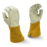 The Radians RWG6310 leather mig-tig welding glove offers select grain cowhide leather construction, seamless forefinger, wing thumb, 4″ brown regular split shoulder cuff, and aramid stitching.