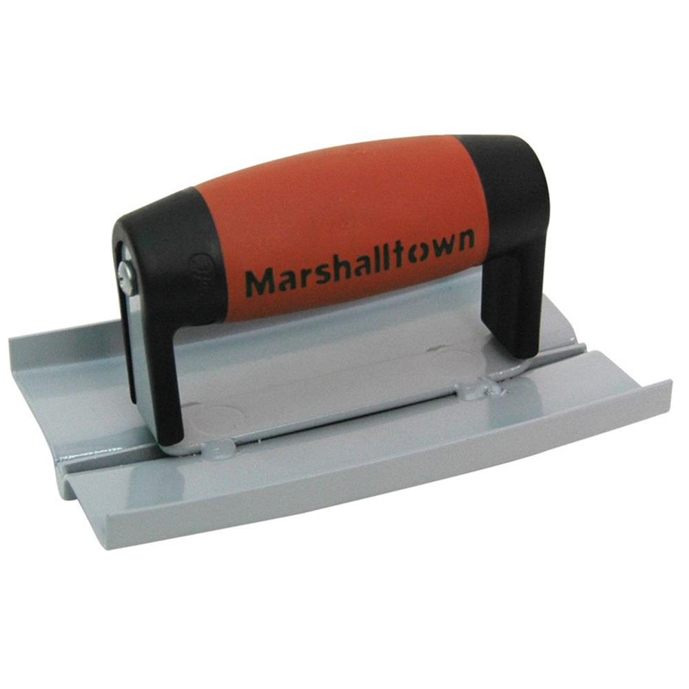 The MARSHALLTOWN Stainless Steel Rocker Hand Groover has a slight bow to give this tool a rocker effect. It is made of heavy gauge stainless steel and is strengthened by a stiffening strip that will help create quality joints. This concrete tool has a comfortable DuraSoft? handle and a protective powder coat finish. The product comes in a 6inx 3?in size with a set radius and depth and is Made in the USA with Global Materials.