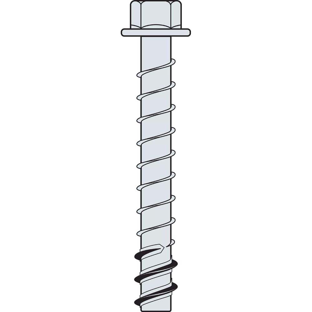- Serrated carbon-steel threads at the tip undercut concrete as the anchor is driven in, ensuring maximum load transfer and secure installation.