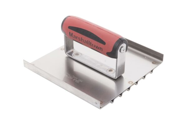 MARSHALLTOWN’s 6in x 6in Stainless Steel Safety Groover with a DuraSoft? handle creates six safety grooves on concrete steps or slabs. It creates six grooves ?in apart and at a 3?16in depth in one pass, making perfectly parallel lines that help create professional-looking traction in high-traffic areas. The design of this product brings quality results to your concrete projects. This product is Made in the USA with Global Materials.