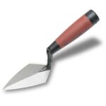 The 45 4.5D Marshalltown 4 1/2 X 2 1/4 Pointing Trowel with DuraSoft Handle is the perfect tool for precise and detailed work, particularly when filling small cavities and repairing deteriorating mortar joints. Made from a single piece of high-carbon steel, this trowel ensures exceptional strength and durability. The 4 1/2-inch blade length and 2 1/4-inch width are ideal for providing flexibility and control, making it a great choice for fine repairs in tight spaces. Designed with a DuraSoft® handle, this trowel offers a comfortable, non-slip grip that reduces hand fatigue during long periods of use. The Philadelphia pattern provides extra flexibility, allowing for easy maneuverability and precision in small, tight spots. Tempered, ground, and polished from heel to toe, this Marshalltown Pointing Trowel ensures flexibility and smooth performance on every project. Made in the USA with global materials, it’s built to last and deliver top-notch results for both professionals and DIY enthusiasts alike.