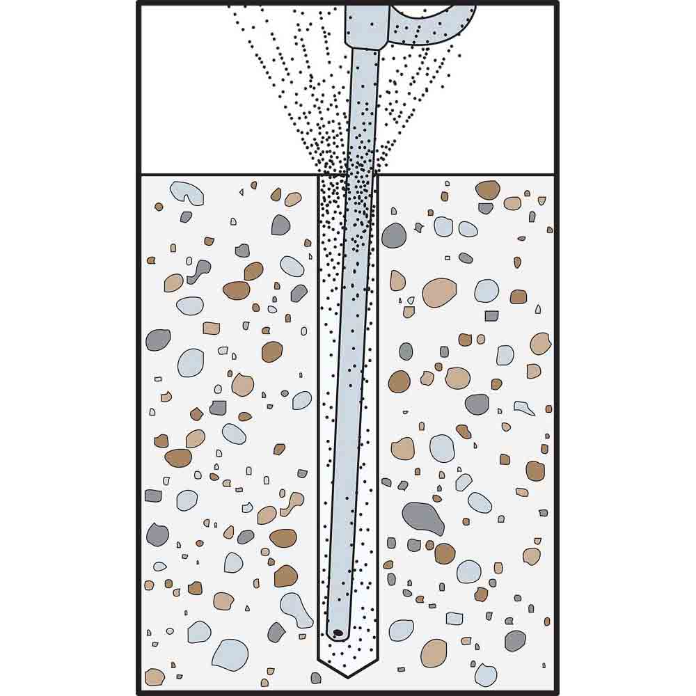 - Carbon-steel cutting threads undercut the concrete as they are driven in, ensuring strong interlock with the base material