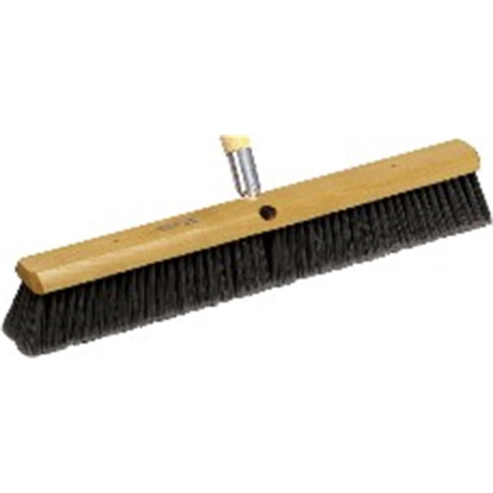 The MARSHALLTOWN Floor Brooms come in three different types of floor finishes: rough, semi-smooth, and smooth. Each of these work ideally for certain types of conditions. The rough broom with long coarse brown styrene bristles can be used on wet or dry situations to pick up material from concrete or asphalt surfaces. The semi-smooth broom with black Tampico fibers should mainly be used for dry floors, and the smooth broom with long silver flag-tipped plastic bristles sweeps smooth, highly polished floors. All types of bristles are 3in in length and set in a clear lacquered half-round hardwood block. This product is Made in the USA with Global Materials.