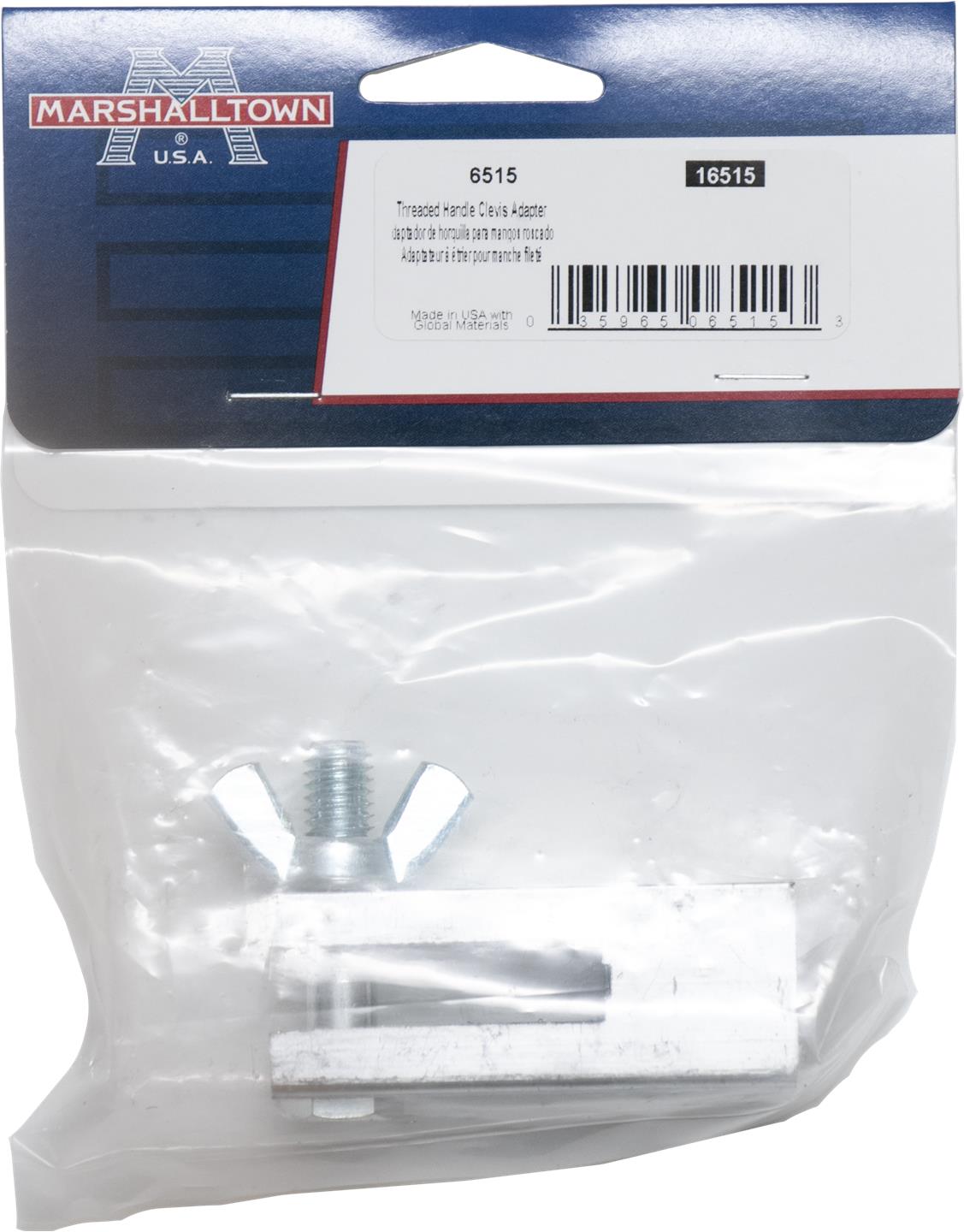 MARSHALLTOWN’s Broom Adapters come in a threaded handle clevis, clevis adapter base, and a poly threaded adapter. The threaded handle clevis adapter has an all-angle mount that comes with a square bolt, wingnut, and washer. The clevis adapter base mounts to most broom heads and accepts the threaded handle clevis so that broom heads can be used with different handles. The poly threaded adapter connects threaded handle sections to different broom adapters or brooms.