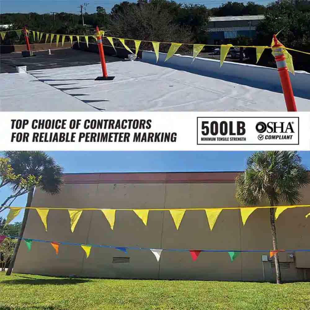 • Meets 500lb minimum tensile strength required by OSHA for perimeter marking.