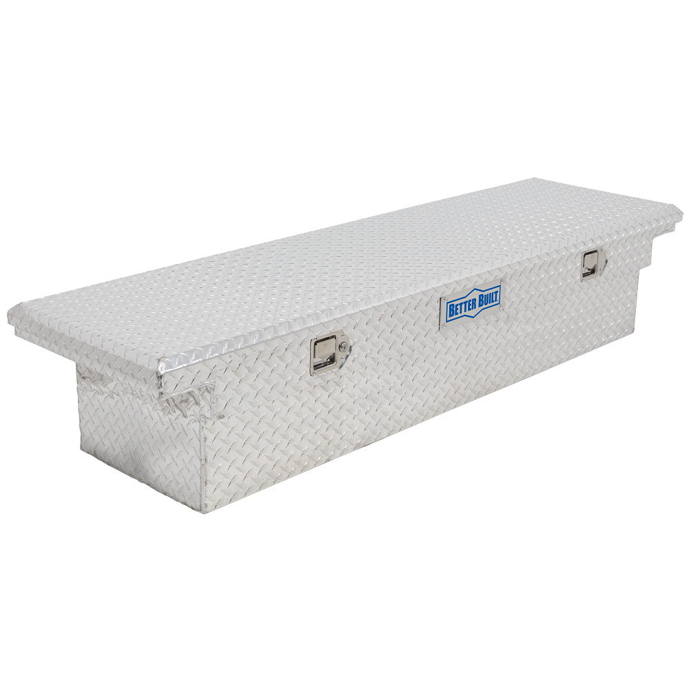 BETTER BUILT Saddle Truck Tool Boxes protect tools while keeping the truck bed floor clear. This 69-inch low-profile brite aluminum box features stainless steel lockable paddle handles (driver-side locking), a narrow wedge-cut tub to clear wheel wells, full-seal weather stripping with self-adjusting strikers for secure closure, and self-rising gas springs for one-handed access. Backed by a 1-year limited warranty.
