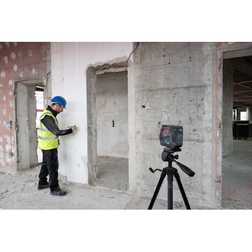 - Green-beam cross-line laser projects up to 4X brighter lines than red for superior visibility