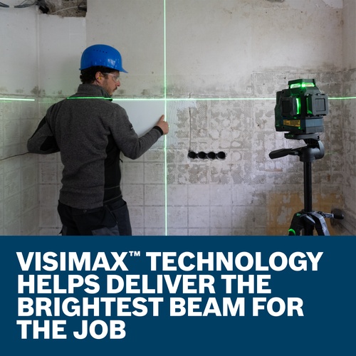 • All-in-one 360° three-plane leveling and alignment with one horizontal and two vertical green-beam lines
