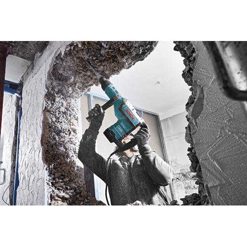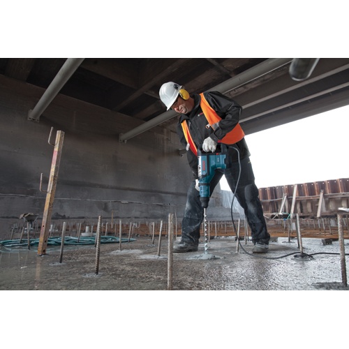 The RH745 delivers 8.2 Ft.-Lbs. of impact energy (EPTA) and offers two modes: rotary hammer and hammer-only. A variable speed dial provides controlled drilling and chiseling, while Vario-Lock allows the chisel to be set in 12 positions for the best working angle. Includes auxiliary handle, grease tube and carrying case.