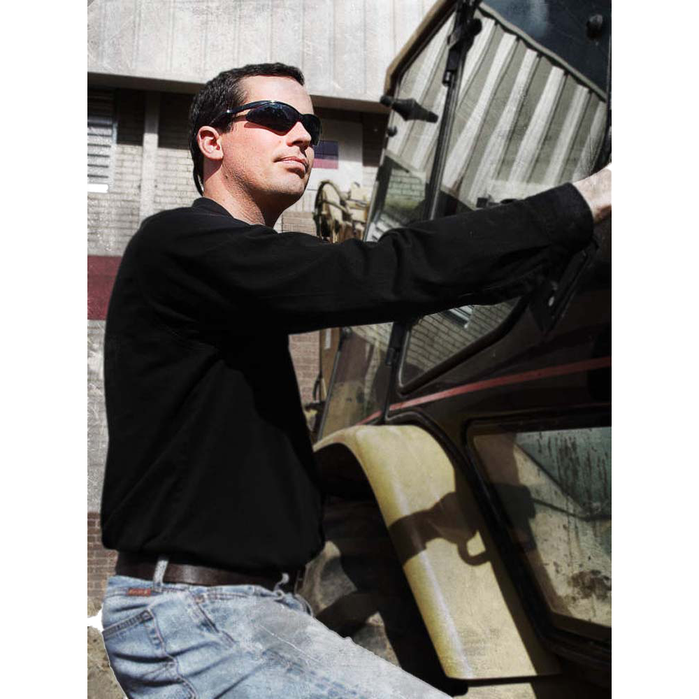 Radians Rad-Apocalypseâ„¢ safety glasses have a sleek, sporty, lightweight style. With a rubber nose piece and rubber temples this glass can be worn all day and remain comfortable. Hard coated, polycarbonate lenses meet the ANSI standard as well as provide impact resistance, scratch resistance and UV protection. A safety neck cord is also provided with each pair.