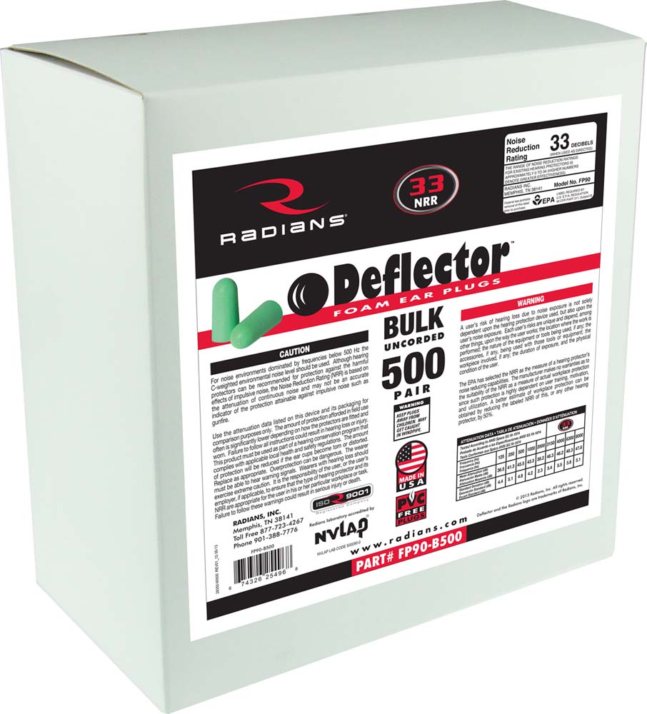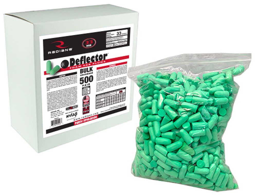 - Bulk 500 pair of uncorded Deflector foam earplugs