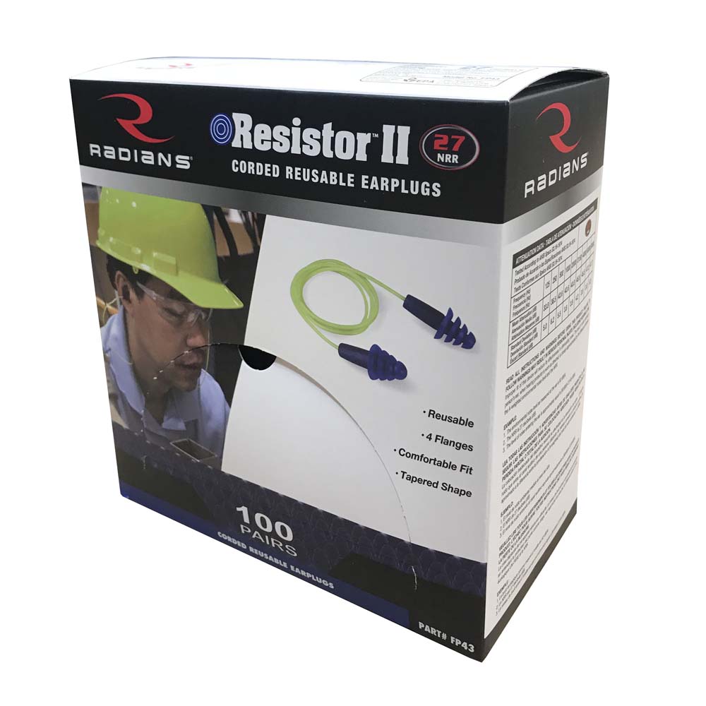 [Case of 1000] Radians FP43 Resistor II Reusable Flanged Earplugs – Corded