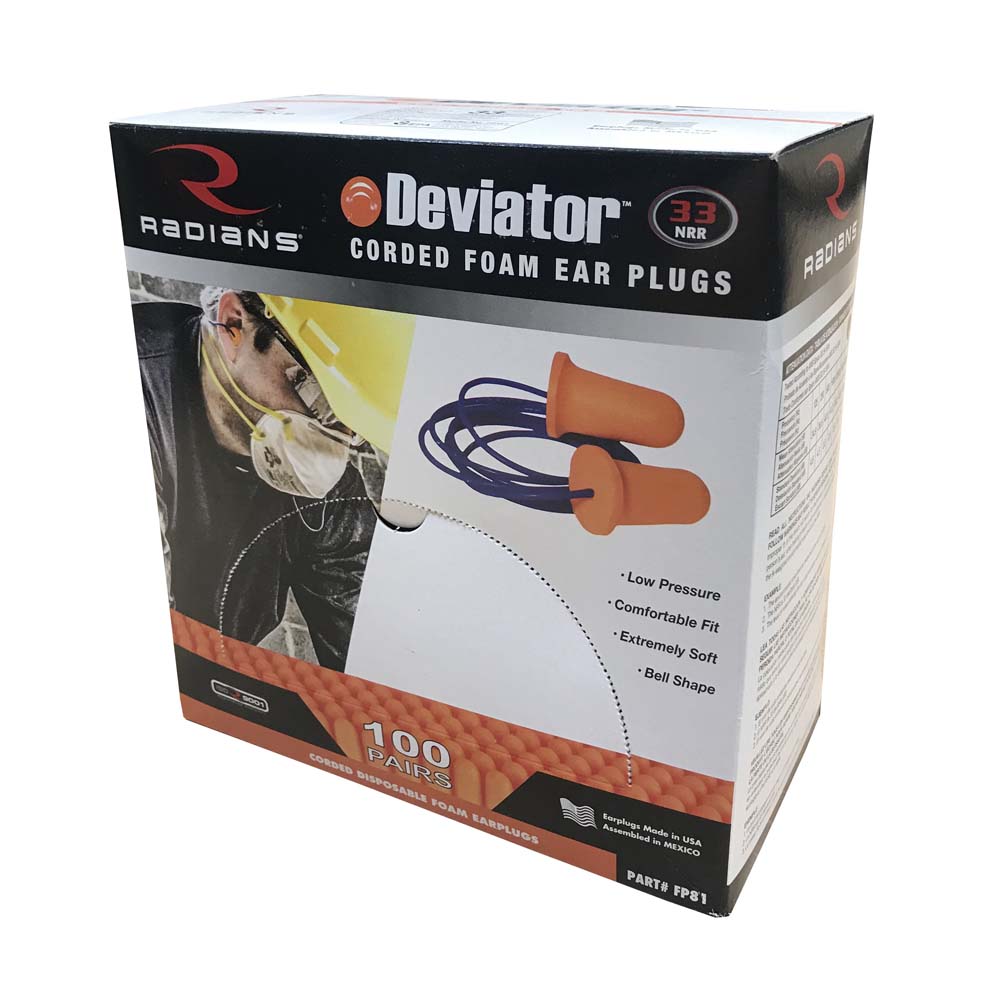 [Case of 1000] Radians FP81 Deviator 33 Disposable Foam Corded Earplugs