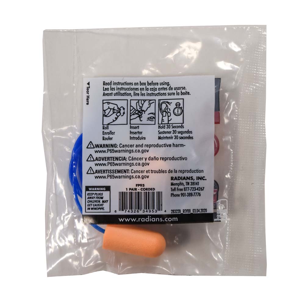 [Case of 1000] Radians FP95 EVADER 33 Disposable Foam Earplugs – Corded