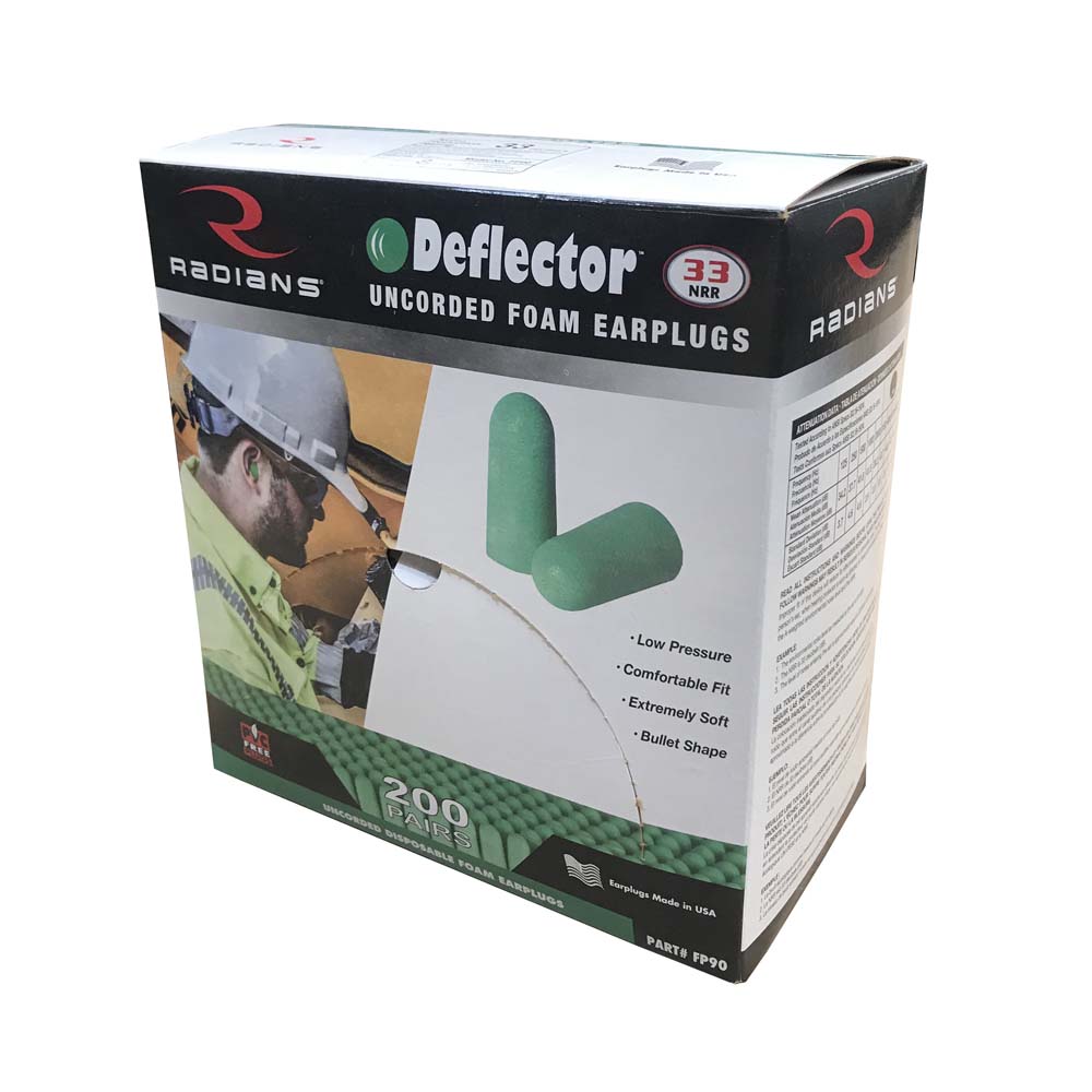 Tested according to ANSI specs S3.19-1974, Radians Made in the USA disposable foam earplugs feature soft, slow-recovery foam for extreme comfort and outstanding noise reduction to protect your hearing. They are easy to roll down and insert, and they expand slowly for a low-pressure fit in virtually any size ear canal. They are conveniently packaged in individual polybags to keep each pair clean.