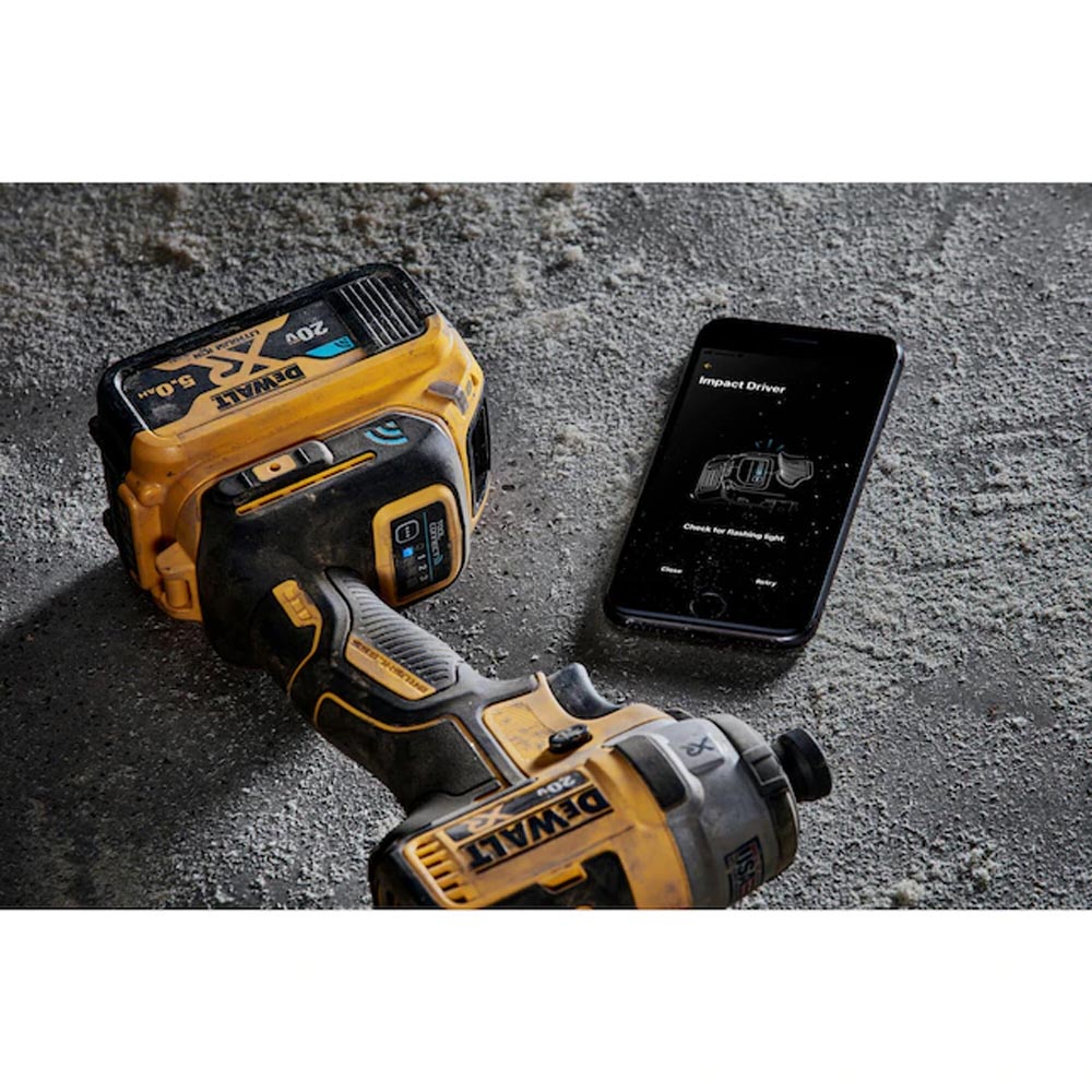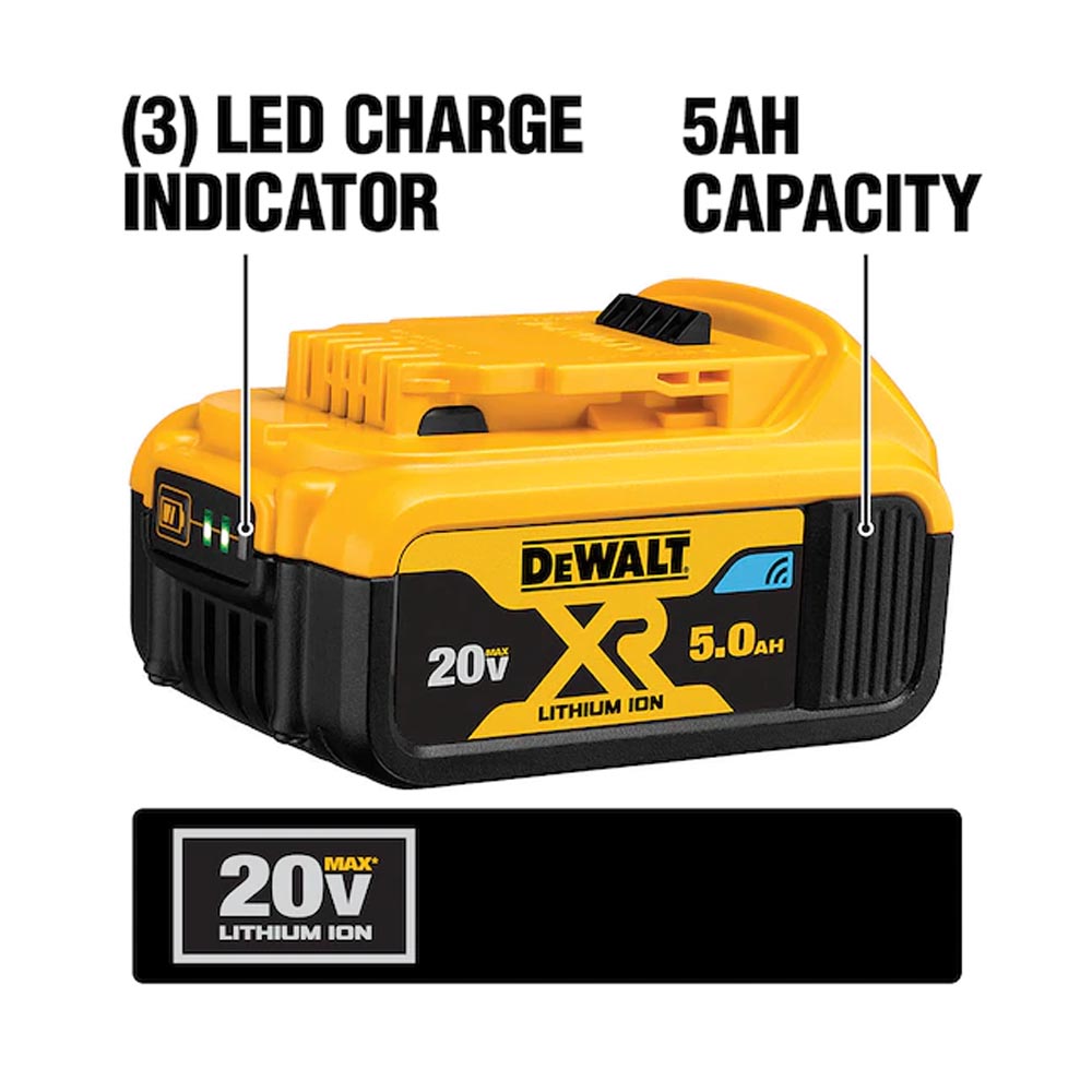DEWALT 20V MAX XR premium lithium pack 5.0 A/H Bluetooth battery.