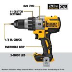 This 20V MAX Cordless 1/2-inch Hammer Drill comes equipped with a heavy-duty ratcheting nitro-carburized metal chuck with carbide inserts for superior bit-gripping strength and a high-efficiency brushless motor that delivers up to 75% more runtime than brushed. It features a 3-mode LED, providing light in dark or confined spaces, and is 20X brighter than the previous model. Battery and charger sold separately.