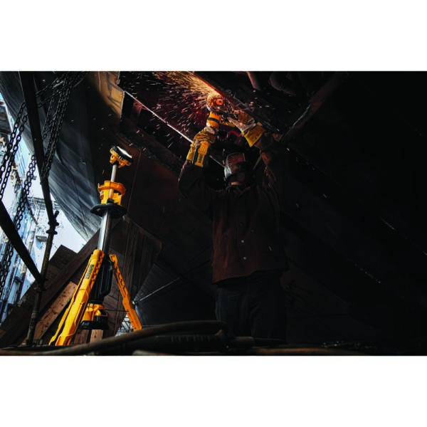 The DEWALT 20V MAX cordless tripod light illuminates your workspace in the toughest jobsite conditions. It’s built for incredible durability in use, storage, or transport. Eliminate the hazardous heat of halogen. Cutting edge LED technology provides extended runtime and natural white light. Variable brightness settings up to 3000 lm let you customize illumination for your work area. Compact design with carry handle provides easy portability, and it sets up in seconds. Rotating, pivoting head directs light where you need it.
