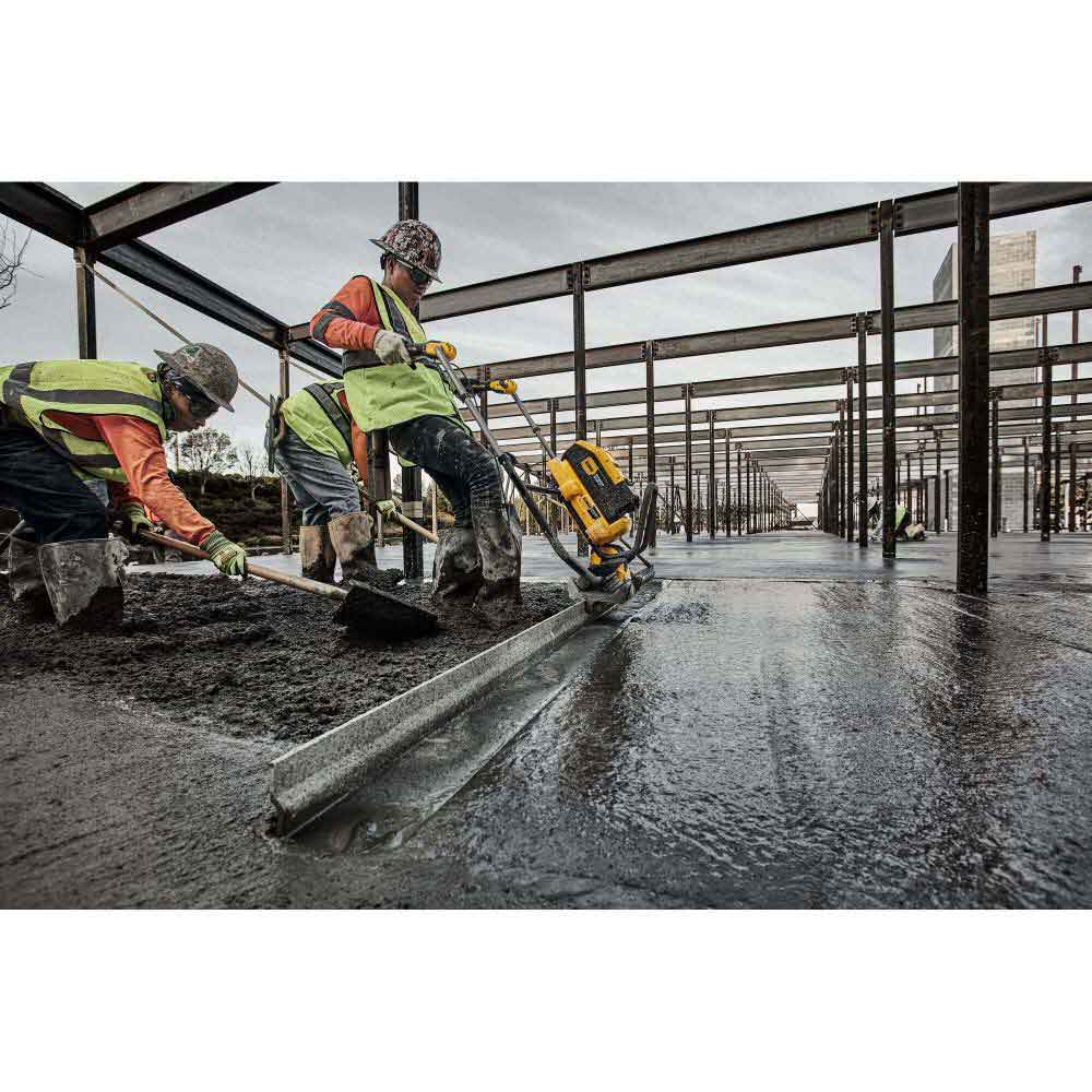 Level and smooth the surfaces of stiff and slumped concrete with the DEWALT POWERSHIFT Concrete Power Screed. With a variable speed trigger that offers 0 – 7,800 VPM, this tool has the power to break a fresh, cold joint. Designed ergonomically for long days, the DEWALT POWERSHIFT Power Screed features adjustable handlebars, controls that can be mounted on the left or right side, as well as rotate 180 degrees. For versatile performance, this cordless screed has a direct bolt up for 9 in. hole spaced L-Shape bars and includes adapters to support 3 of the most commonly used bar/board styles.