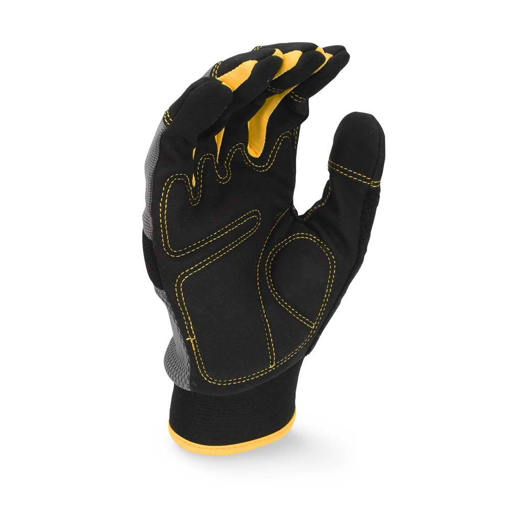 The DEWALT DPG211 Foam Padded Performance Glove protects against hand fatigue when working on jobs such as machinery repair, wooden structure installation, or digging through gravel and rock. Foam padding on palms and knuckles cushions hands from tool use, while synthetic leather fingertip overlays provide a strong grip and abrasion resistance. Double stitching and thumb saddle provides added durability.