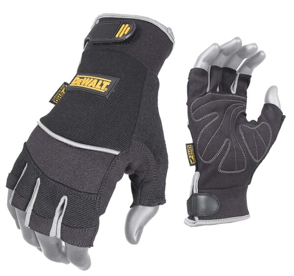 The DEWALT DPG230 Technicians Fingerless Synthetic Leather Glove is a fingerless glove with ultra high bare finger dexterity that features a full synthetic palm overlay and extended custom wrist closure, making this the most durable fingerless in its class. DEWALT HD work gloves afford the highest level of comfort and dexterity available for jobs demanding precise control. Abrasion resistant and machine washable.