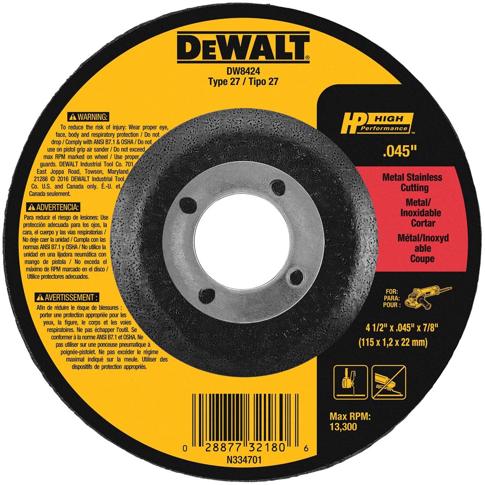 Dewalt DW8424 Z 4-1/2in X .045in X 7/8in Thin Cutting Wheel Type 27 Depressed Center Wheel