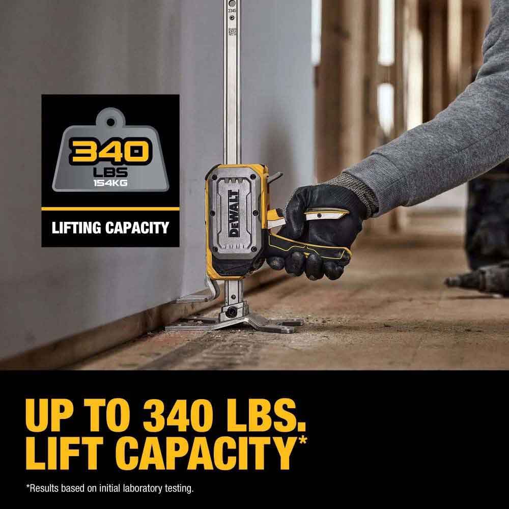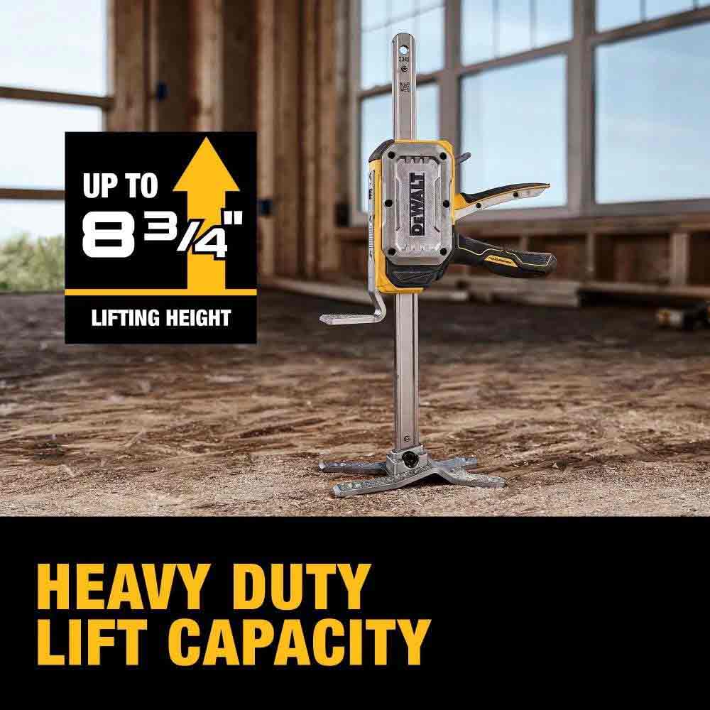 Work smart and let the TOUGHSERIES Construction Jack do the heavy lifting for you. Lift, level, and lighten the load with the DEWALT TOUGHSERIES Construction Jack that is equipped with a handle for step-to-lift operation or squeeze-to-lift operation. Featuring a slim base that helps enable quick access under applications and an ergonomically designed trigger with metal ribs, this TOUGHSERIES tool offers a lifting capacity of up to 340 lbs.