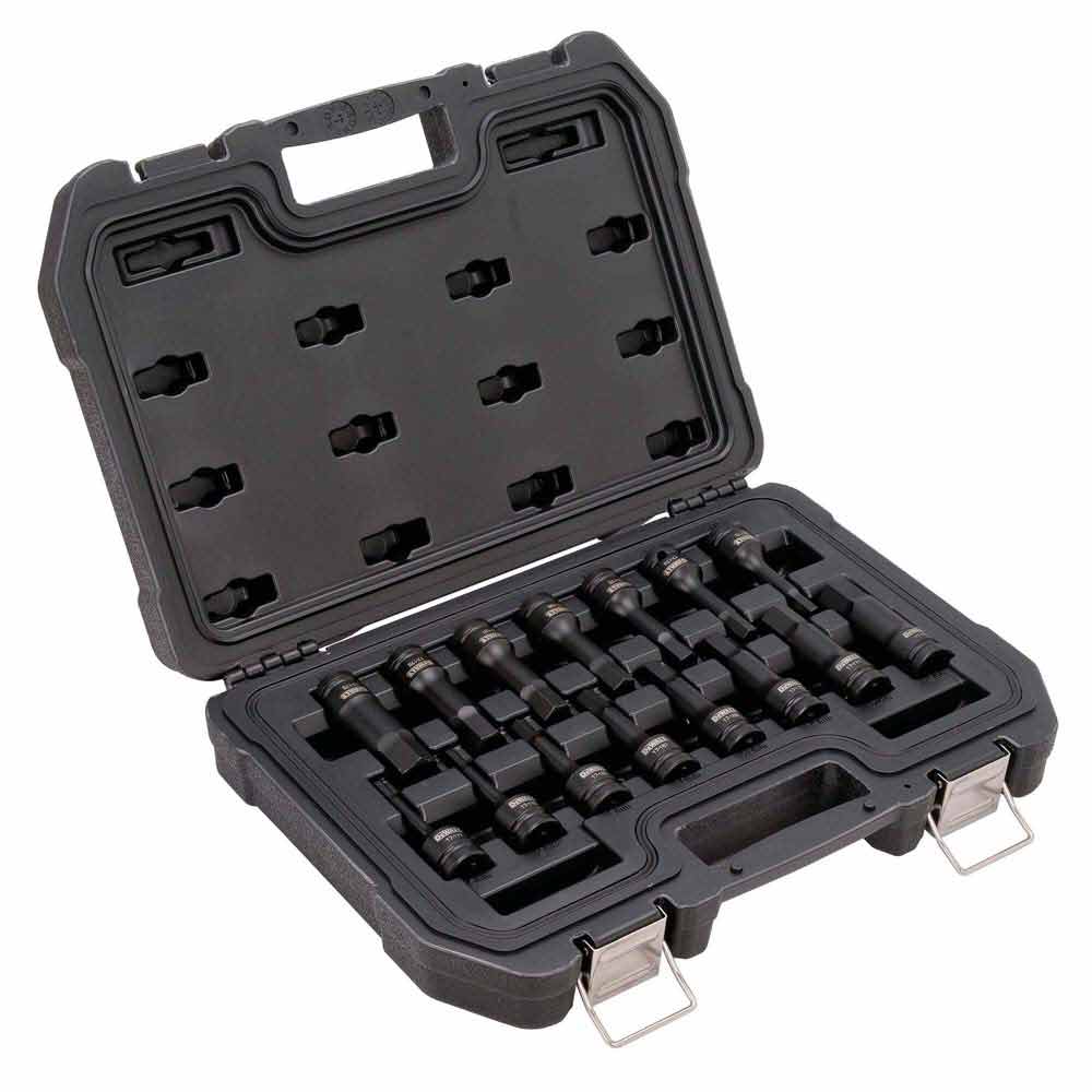 The 15 Piece Combination Impact Hex Bit Socket Set Metric and Standard offers a wide variety of impact sockets for any user need. These impact sockets 1/2 drive have Direct Torque technology to help prevent rounding of fasteners and provide better grip.