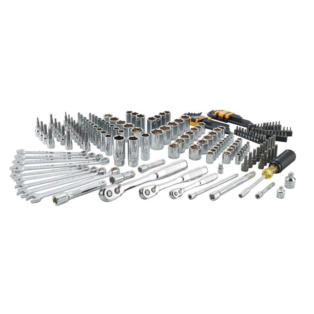 This DEWALT 200-piece mechanics tool set equips you with everything you will need for the job. This mechanic set is ideal for the professional on the job that wants to get the job done right. Whether you are on the jobsite tightening lag bolts or in the automotive shop repairing a car, our product offering will provide you with the tools you need to complete your task.
