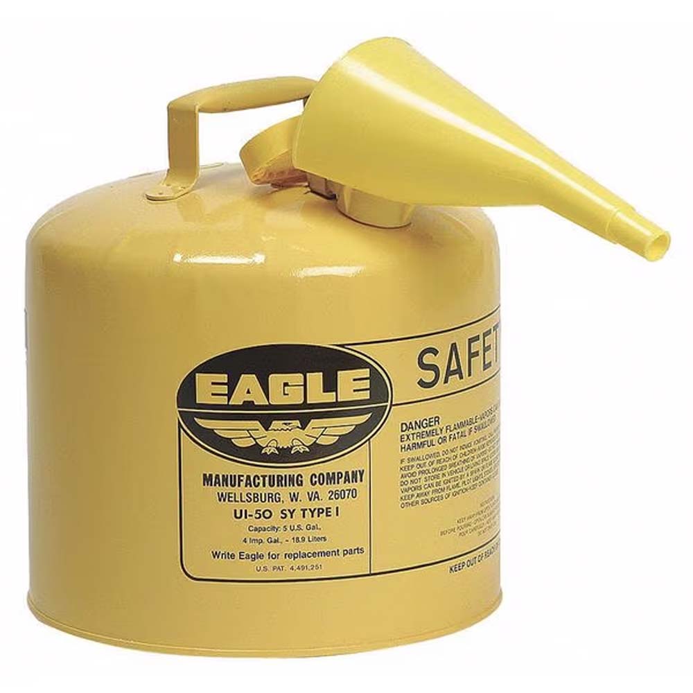 Eagle UI50FSY 5 Gallon Yellow Steel Safety Can for Diesel, Type I, Flame Arrester, Funnel