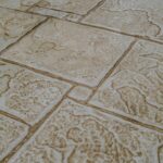 The MARSHALLTOWN English Riverstone is a high-quality stone stamp that will give your concrete a professional pattern. It comes in a 36in x 36in stamp with ?in-1in deep grout lines. Choose to have a blue, green, or black with your choice of a standard or flex material. All these options are Made in the USA with Global Materials.