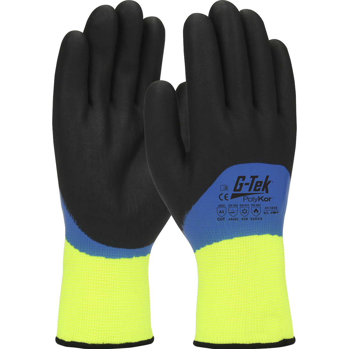 Engineered for professionals working in refrigerated areas, utilities, food processing, commercial fishing, construction, and outdoor winter activities, PolyKor Blended Cold Weather Gloves offer exceptional comfort, protection, and performance. The seamless construction ensures a snug, comfortable fit, while the PolyKor blended shell is lightweight and provides excellent dexterity, tactile sensitivity, and cut resistance for precise tasks. Acrylic lining delivers economical cold-weather protection, keeping your hands warm and insulated in harsh conditions. Featuring a nitrile foam coating, these gloves offer a superior grip in dry, wet, and oily environments, providing confidence and control in challenging applications. Fully coated flat nitrile helps keep your hands dry in wet conditions, and the knit wrist design prevents dirt and debris from entering the gloves. Touchscreen compatibility allows you to operate devices without removing the gloves, enhancing convenience in the field. These gloves are also launderable, offering extended life and reducing replacement costs. With color-coded hems for easy size identification, PolyKor Blended Cold Weather Gloves provide the durability, thermal insulation, and comfort needed to excel in demanding work environments.