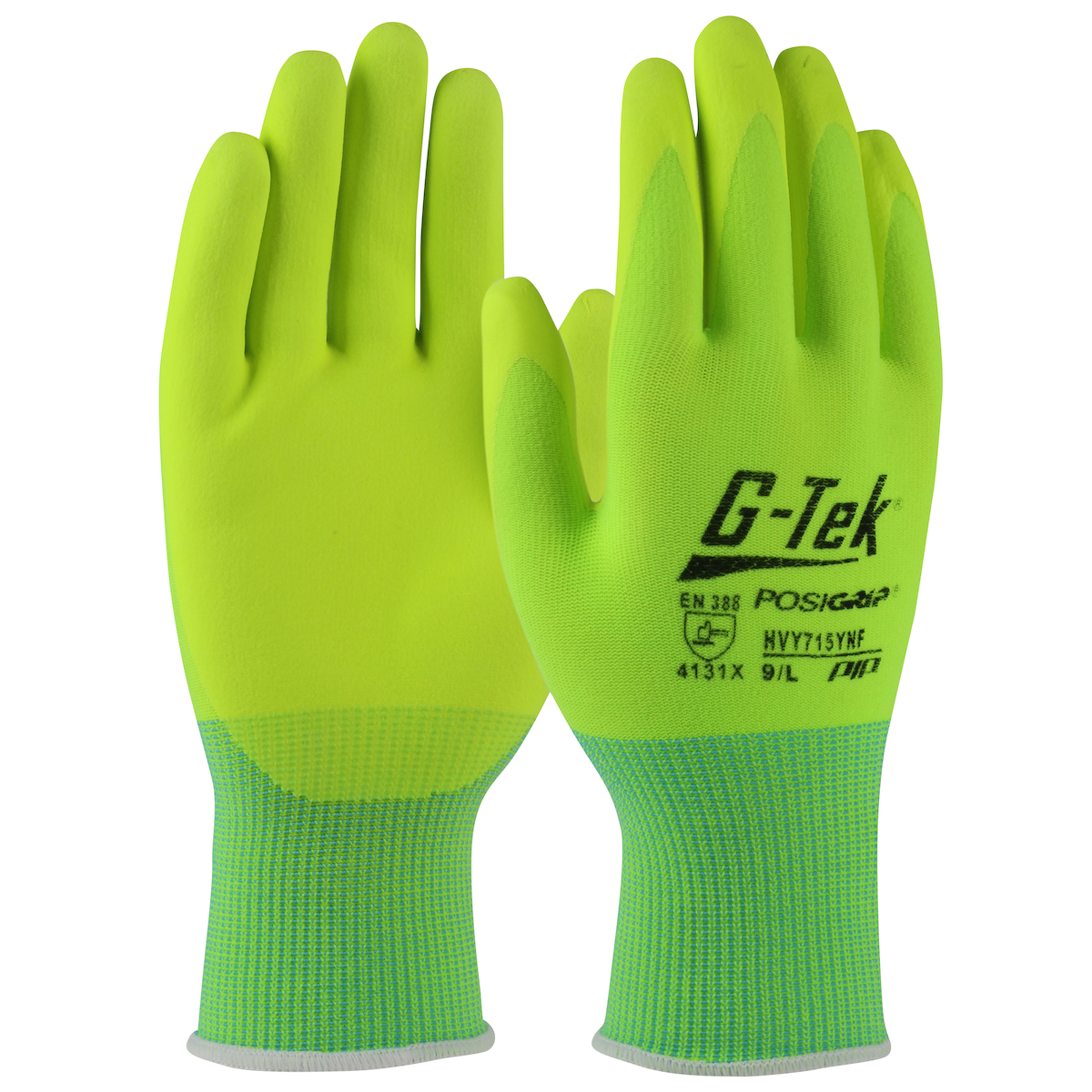 G-Tek HVY715YNF Hi-Vis Seamless Knit Nylon Glove with Nitrile Coated Foam Grip on Palm & Fingers [1 dozen]