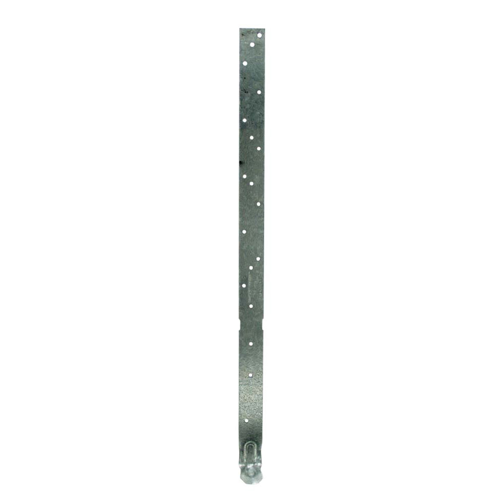 The Simpson Strong-Tie HETA24 is a robust, code-compliant solution for securely anchoring roof trusses to concrete or masonry walls. Designed to handle wind and seismic forces, this 24-inch heavy embedded truss anchor provides a strong and reliable connection in structural applications. Engineered for performance, the HETA24 features a staggered nail pattern to increase uplift resistance, and it can be installed straight or field-bent to wrap around truss or rafter members. An indented embedment line ensures precise installation depth, reducing the risk of under- or over-embedding during the concrete pour. Ideal for both single- and multi-ply trusses, the HETA24 is also compatible with Simpson Strong-Tie TSS and TBP8 moisture barrier plates for added protection in moisture-prone environments.