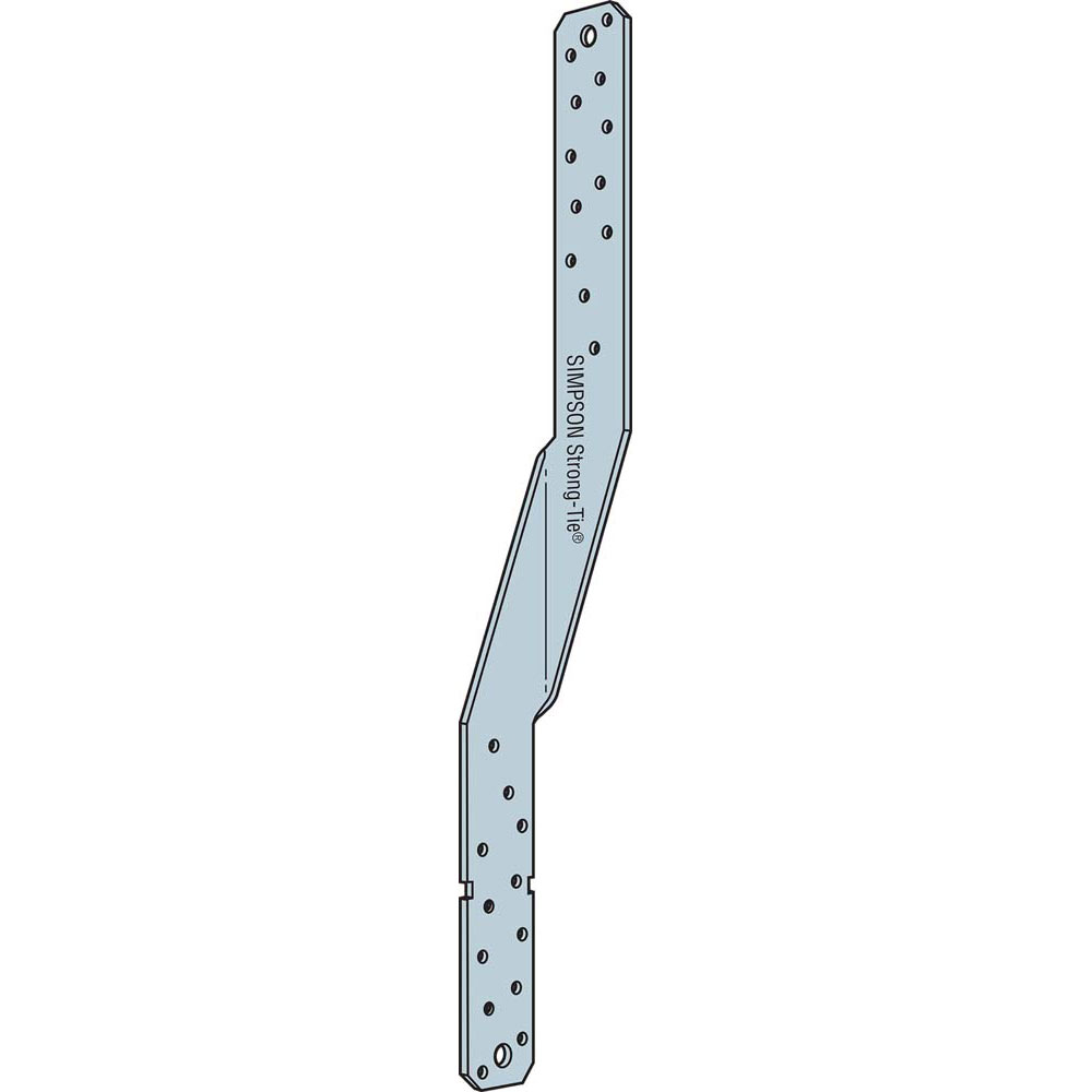 The Simpson Strong-Tie HTS24 is a heavy-duty twist strap designed to provide a strong tension connection between structural members, especially effective at the rafter or heel of a truss. This 24-inch strap is crafted from 14-gauge galvanized steel for lasting durability and performance. The HTS24 resists heavy uplift loads and is engineered with a small bend section, reducing interference at transition points for a smoother, more seamless installation. With no need to wrap over the truss to achieve full allowable load, this strap offers both versatility and convenience on the jobsite. Available with a reversed bend for specialized installation needs.