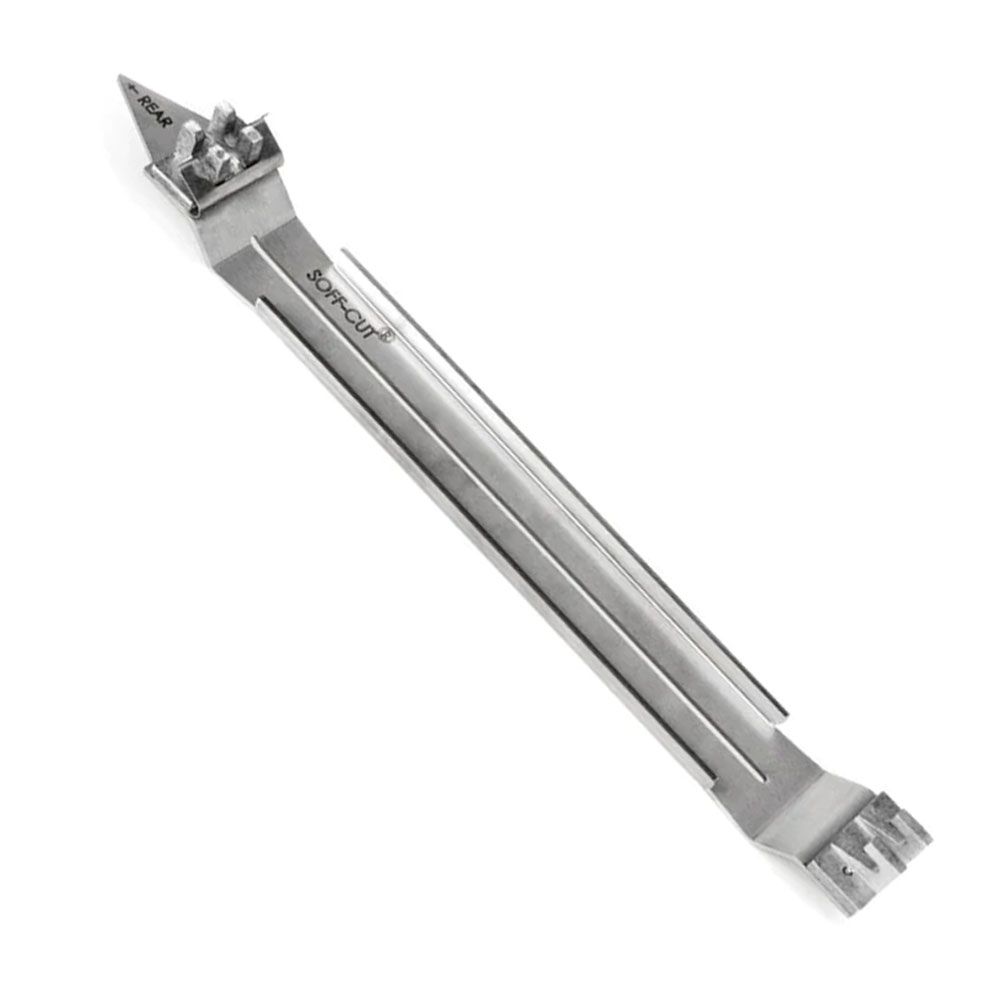 Uses Technology that is contingent on upward-cutting rotation of the Soff-Cut blade and spring loaded skid plate. The pressure applied to the surface by the blade, skid plate and block prevents chipping, spalling and ensures a smooth cut.